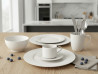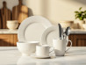 Сетот вклучува чинии за главни оброци, чинии за предјадење, чинии за супа или житарки, како и чаши за секаков вкус на пијалоци - од кафе и чај до млеко или топло чоколадо. Чистиот, класичен дизајн одговара на секој стил на маса - минималистички, модерен или традиционален - што го прави овој сет одличен избор за секоја кујна.