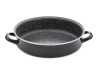 Безвременски спој на форма и функција - Delimano Stone Legend Black Округлата тава е класичен начин за подготовка и сервирање на оброци за паметење. Оваа округла тава е совршена за подготовка на секаков вид јадења и печење на погачи. Изработена од јаглероден челик и емај, обложена со нелеплива Quantanium облога, зајакната со честички од камен.