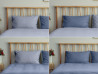 Овој сет е достапен во 5 класични бои кои целосно ќе ја надополнат секоја спална соба: сина, тиркизна, виолетова, зелена и сива. Навлаките за перница и јорган се двострани, едната страна е посветла а другата потемна. Комбинирајте ги страните и создадете 4 различни изгледи со 1 постелнина.