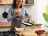 Американски палачинки со боровинки или тенки француски палачинки со мармалад или чоколаден крем - изборот е ваш. Што и да посакате, оваа емајлирана тава за палачинки од јаглероден челик е тоа што ви е потребно за да подготвите здрав појадок, слатка попладневна ужина или вкусна вечера. Благодарение на ниските страни и нелепливата облога, можете лесно да ги превртувате и префрлате палачинките од тавата во чинија.